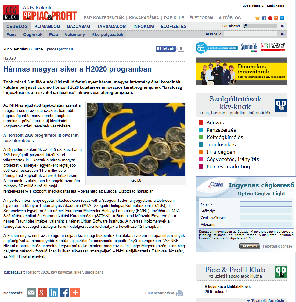 » Hármas magyar siker a H2020 programban