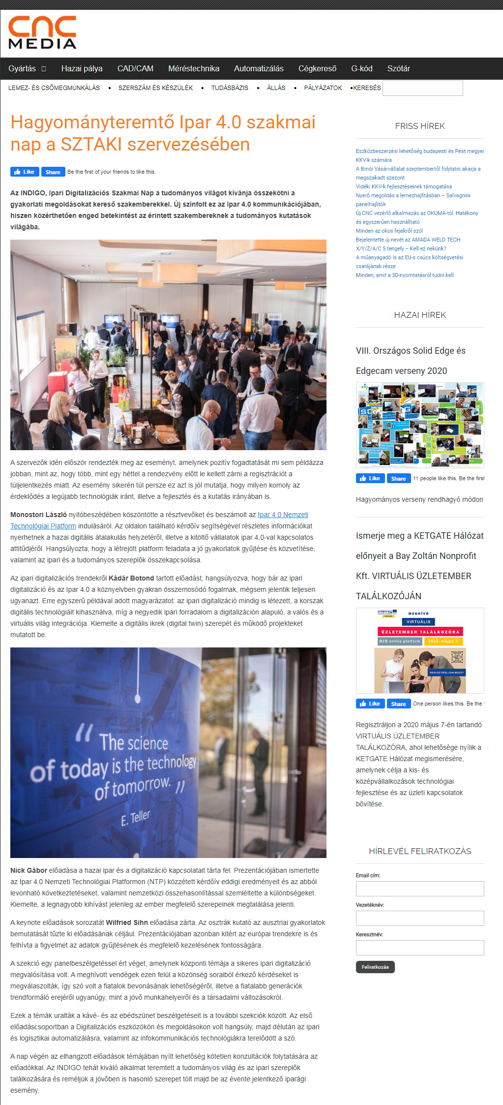 Az INDIGO, Ipari Digitalizációs Szakmai Nap a tudományos világot kívánja összekötni a gyakorlati megoldásokat kereső szakemberekkel. Új színfolt ez az Ipar 4.0 kommunikációjában, hiszen közérthetően enged betekintést az érintett szakembereknek a tudományos kutatások világába. A szervezők idén először rendezték meg az eseményt, amelynek pozitív fogadtatását mi sem példázza jobban, mint az, hogy több, mint egy héttel a rendezvény előtt le kellett zárni a regisztrációt a túljelentkezés miatt. Az esemény sikerén túl persze ez azt is jól mutatja, hogy milyen komoly az érdeklődés a legújabb technológiák iránt, illetve a fejlesztés és a kutatás irányában is.